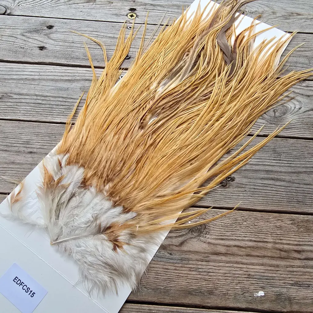 The Ewing Dry Fly Cock Full Saddle – Variant is a perfect example of nature’s happy accidents. These variant saddles come from roosters that have “gotten in with the wrong hens,” resulting in beautiful and unpredictable mixes of colour and pattern across the feathers.