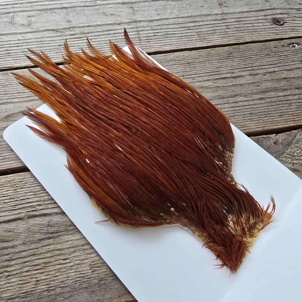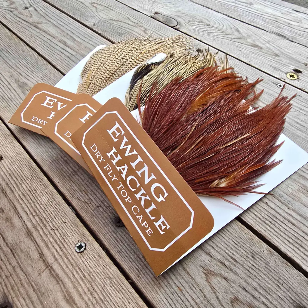 Top-quality cock capes from Ewing Feather Birds, renowned for producing some of the finest genetic dry fly hackle available. The Ewing Dry Fly Top Cape is a unique offering — Ewing carefully separates the top portion of each full cape to reduce waste and deliver the section most prized by fly tiers. This means you get maximum value, paying only for the feathers you’ll actually use.