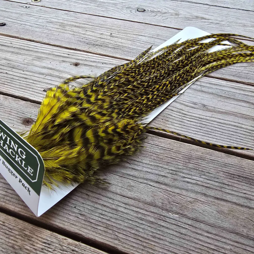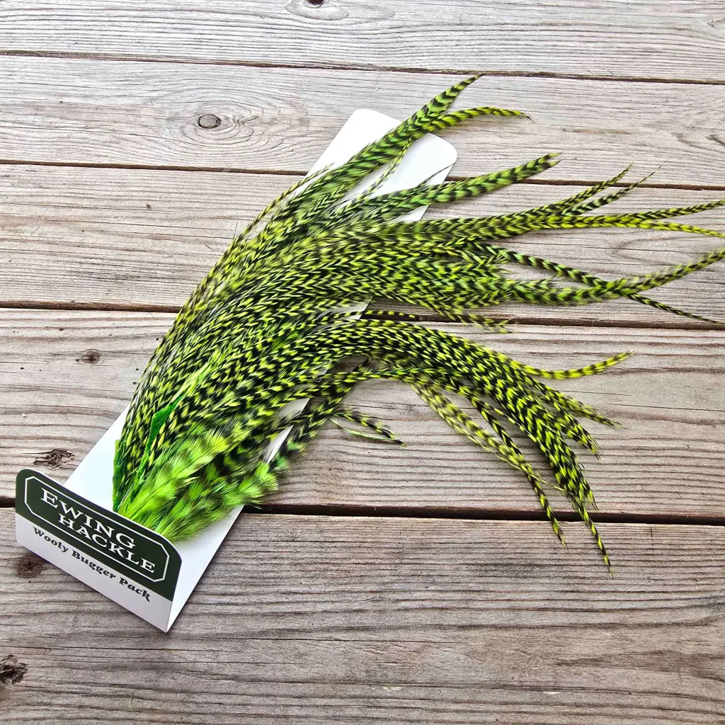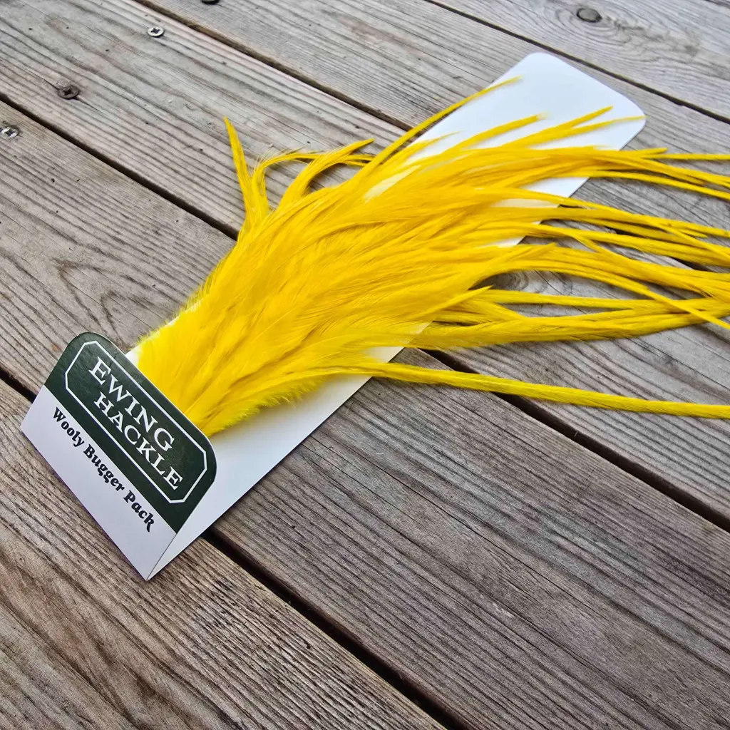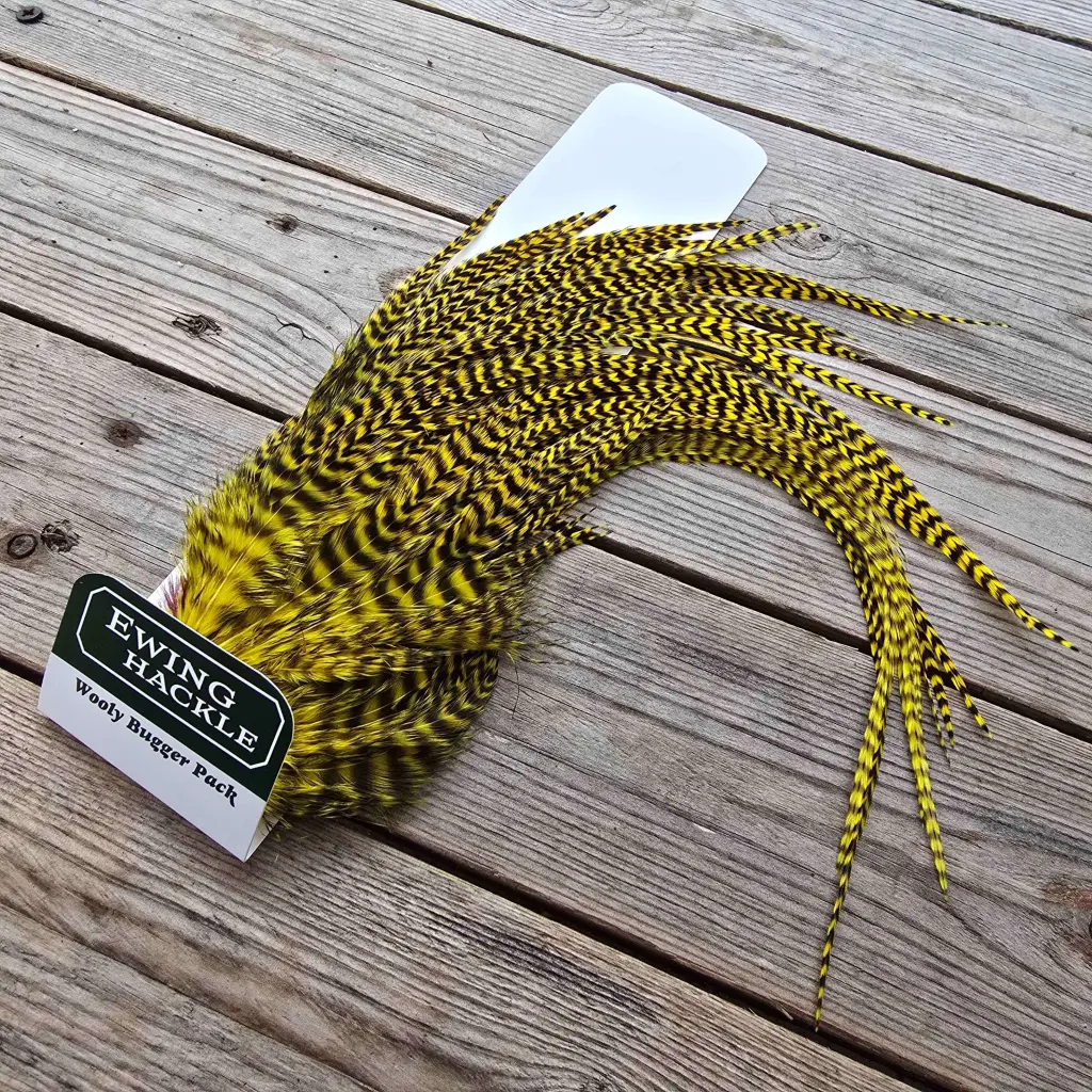 Ewing Woolly Bugger Packs are premium rooster saddle patches, carefully selected for their soft, webbed feathers. Perfect for Woolly Buggers, Humongous-style lures, and other streamers, these feathers create lifelike movement in the water. They offer excellent value and are specifically chosen to meet your tying needs.