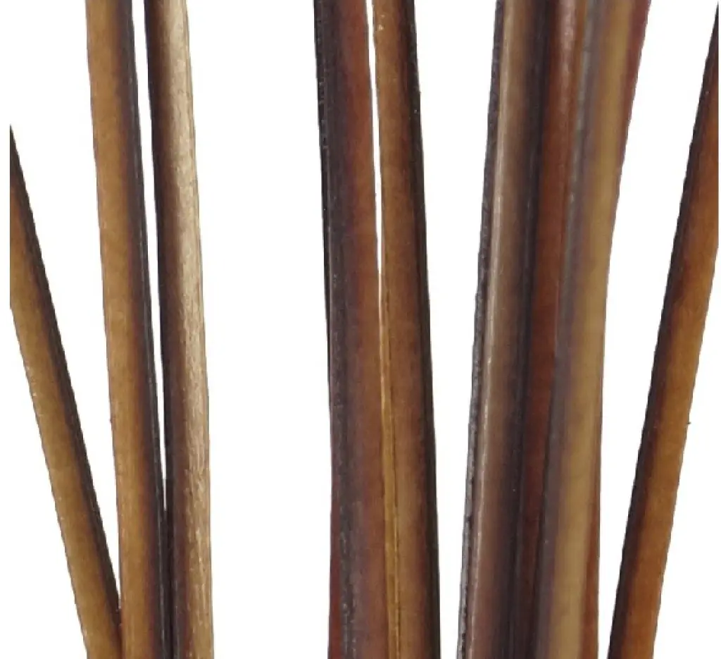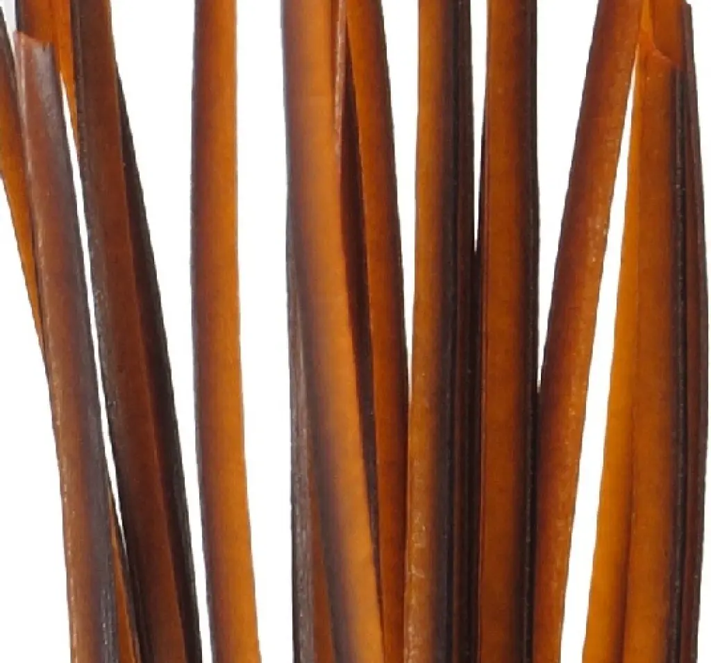 The quill comes from peacock eyes and is hand stripped, which eliminates the problems of cracking as when bleached or chemically stripped.