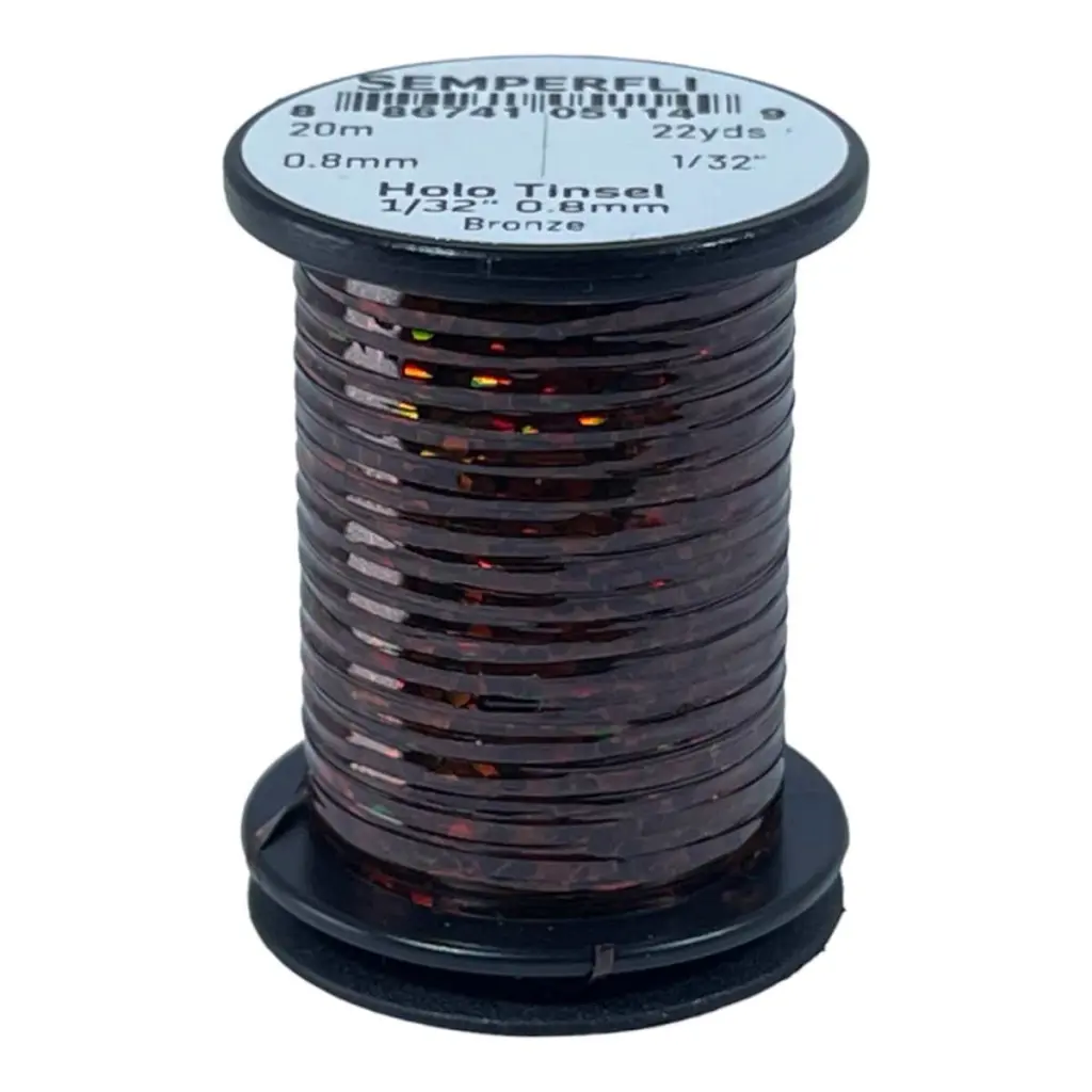 Semperfli Holo Tinsel is ideal as body, ribbing or for lateral lines. With colors including and specialist colors like Mirage, Iridescent and Fluoro there are sure to be tinsels in the Semperfli range that appeal and cover your fly tying needs!